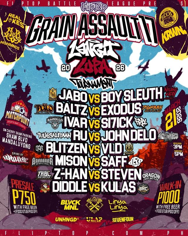 Lahat ng first-round battles ay gaganapin sa Grain Assault 17 sa ika-21 ng Marso 2026. Ang venue ay sa Matchpoint Sports Bar & Events. Nanood kami live nung Zoning 20 at 21 at masasabi naming sobrang ganda nung lugar. Saktong sakto para sa small room na setup. Kahit small room ay malawak yung venue at masarap yung aircon. Kahit nasa pinaka likod ka ay maririnig mo ang mga binabanat ng emcees. Isa pa! Panalo yung pagkain nila! Pwedeng pang hapunan o pang pulutan habang ineenjoy ang malamig na baso FlipTop Beer. Para sa iba pang detalye tungkol sa event, basahin niyo nalang ang piyesa na ‘to. Sa mga may tickets na, kitakits sa Grain Assault 17 at sama-sama tayong maging parte ng kasaysayan.
